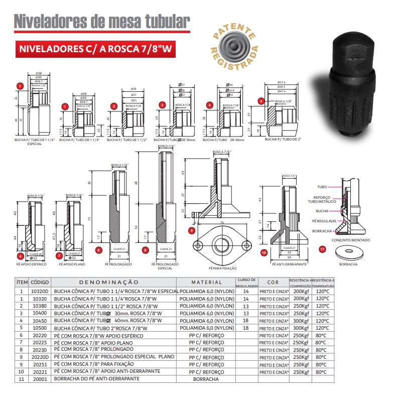 Exemplo: pé antiderrapante rosca 7/8w - cod 20221